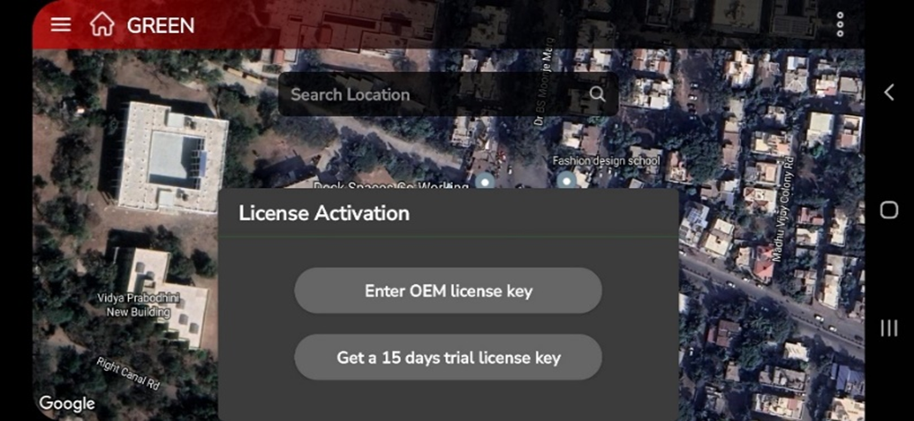 **Step 1.** After launching the application, the following interface will be shown on the user’s device screen, providing the user with the option to either activate the user’s license as an OEM user using the user’s license key or initiate a 15-day trial period. Please select the user’s preferred choice to proceed and input the necessary license information accordingly.