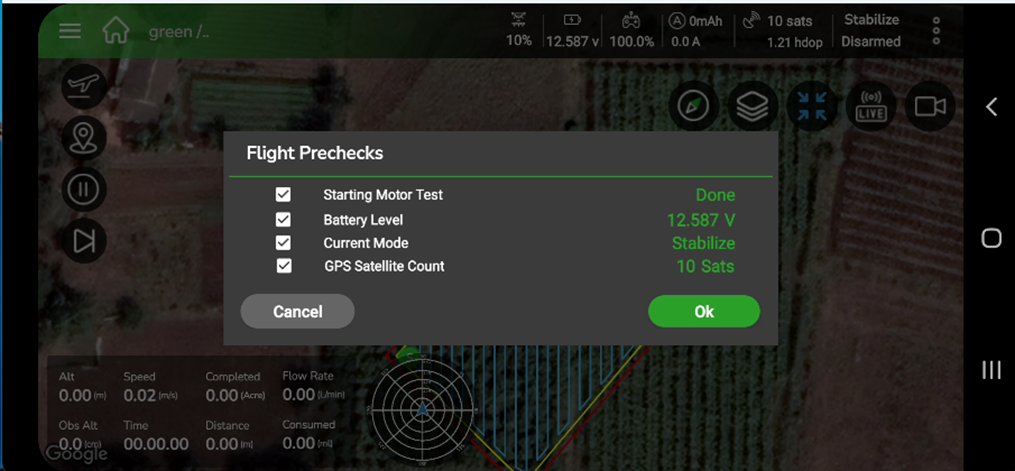 <figure><img src="https://3726973265-files.gitbook.io/~/files/v0/b/gitbook-x-prod.appspot.com/o/spaces%2FEJHDgY5EjEXnZCA7cAxk%2Fuploads%2FOMG38Fe1ytQHc6KCezKr%2Fimage.png?alt=media&#x26;token=845256d6-e940-43bd-8291-df366bb339d1" alt=""><figcaption><p>Flight precheck complete</p></figcaption></figure>