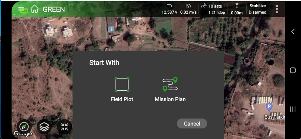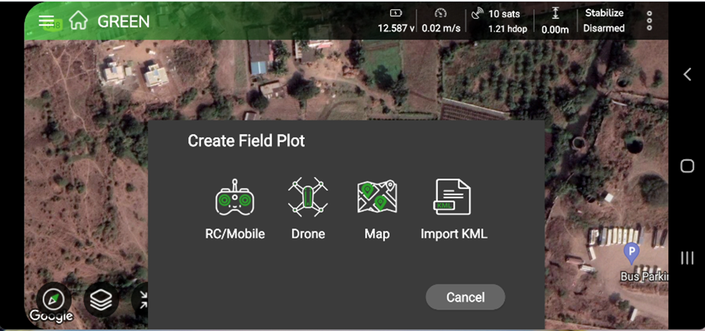 **Step 1:**  After choosing the "**Drone**" option for **plot creation** using the drone, the following screen will be presented on the user’s device.&#x20;