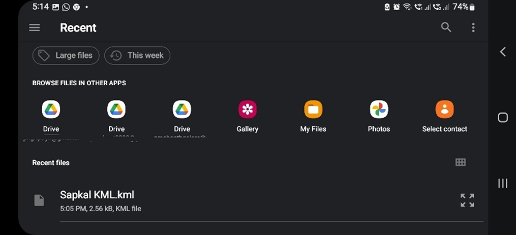 **Step 2**: After the user taps on the .kml file, the screen will show the user the map view associated with that file, just like what the user sees in the image below.&#x20;
