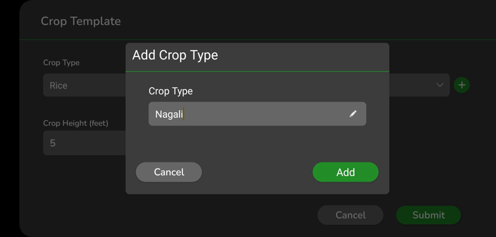 <figure><img src="https://3726973265-files.gitbook.io/~/files/v0/b/gitbook-x-prod.appspot.com/o/spaces%2FEJHDgY5EjEXnZCA7cAxk%2Fuploads%2FoPhE3FxG8J08c4sqqk8O%2Fimage.png?alt=media&#x26;token=3482b7ec-a982-4e95-a14c-3749206d9aa9" alt=""><figcaption><p>Add Crop Type</p></figcaption></figure>